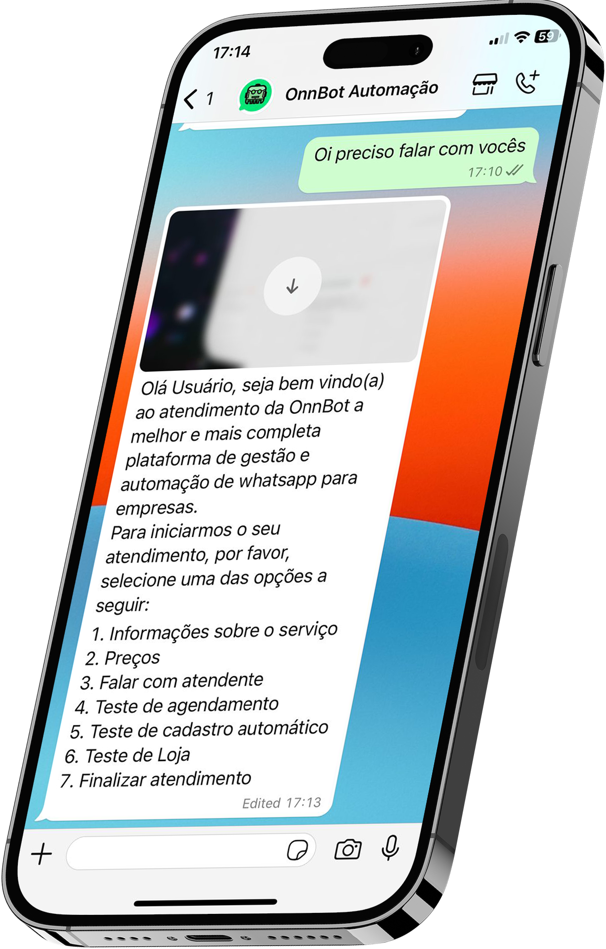 Na OnnBot você pode testar gratuitamente por 7 (sete) dias as nossas funcionalidade, sem necessidade de pagamento antecipado, o que garante a você que a nossa plataforma é completa para o que você precisa. Que tal fazer um teste agora mesmo?